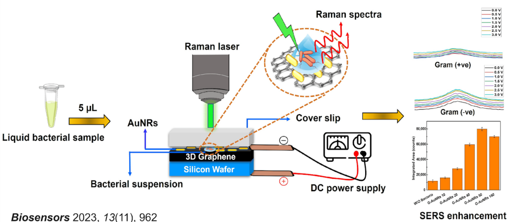 Gold Nanorod Density-Dependent Label-Free Bacteria Sensing on a Flake-like 3D Graphene-Based Device by SERS